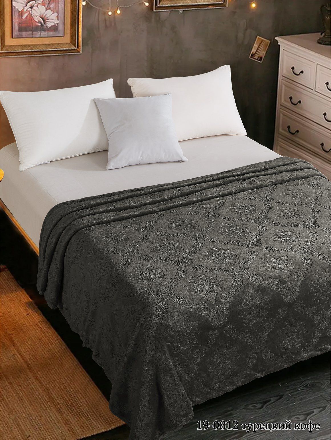 Плед изготовлен из качественной ткани велсофт, которая отличается мягкой бархатистой поверхностью, высокой износостойкостью и способностью хорошо удерживать тепло. Декоративный тисненый рисунок придаёт изделию аккуратный и премиальный внешний вид, сохраняя чёткость рельефа даже при длительной эксплуатации.