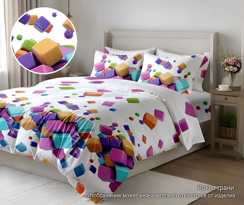 простыня 200х210- 1шт., пододеяльник 175х210 - 1шт., наволочка 70х70 - 2шт.